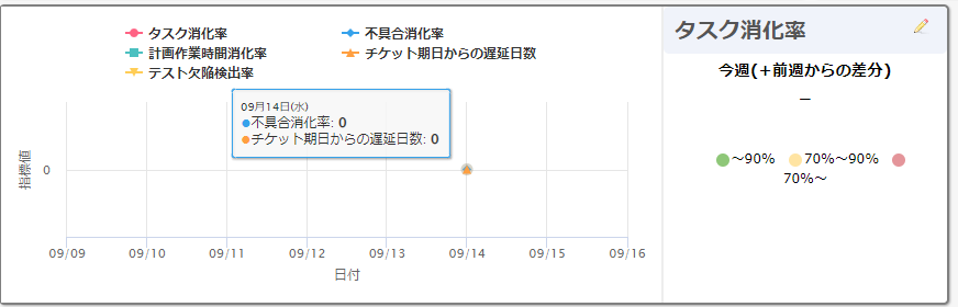いただきました例では、タスク消化率と不具合消化率を推移ではなくひと目で現状がわかりやすい方が良い。というのは確かに、と納得いたしました。