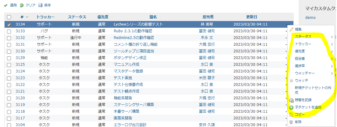 ・要望:操作「・・・」で「チケット関連図」を選択できるようにしていただきたい。