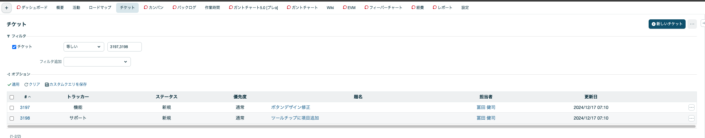 こちらにより「しばらく放置されているチケットか、ここ最近更新があったチケットか」をご確認頂くことが可能かと存じます。