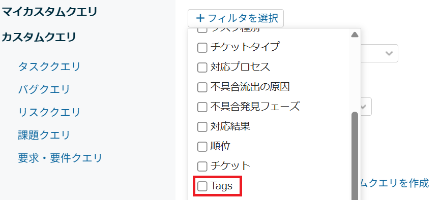 クエリのフィルターや管理→プラグインからのガントチャートプレα版の設定の表示項目ではTagsがあるので、ちゃんと表示されるようにしてほしいです。