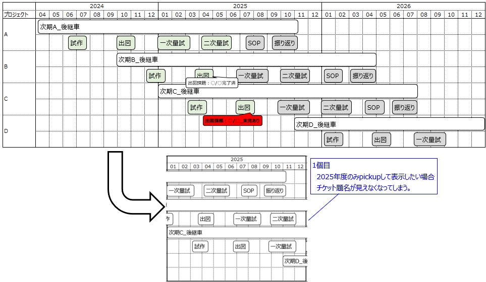 期間の長いプロジェクトに関して、ある一定期間をピックアップして報告する際、
