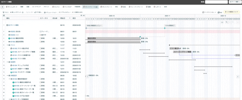 未完了ガントチャート5(β)のパラレルビューの表記改善依頼