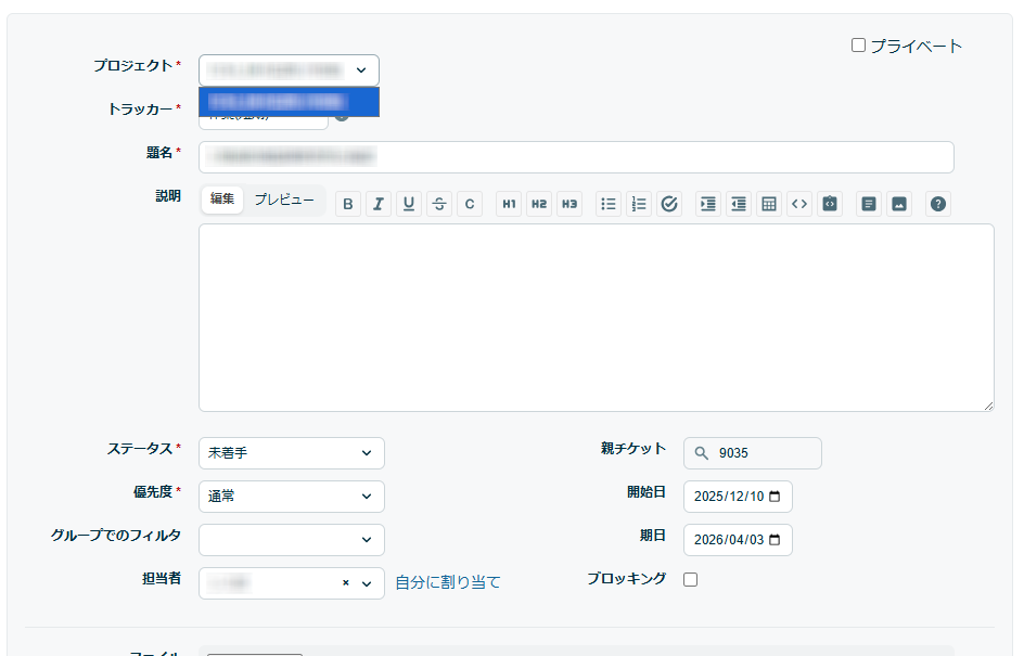 親チケット又は複数の小チケットをコピーする場合は別プロジェクトが選択できるので、できれば仕様を統一して欲しい。