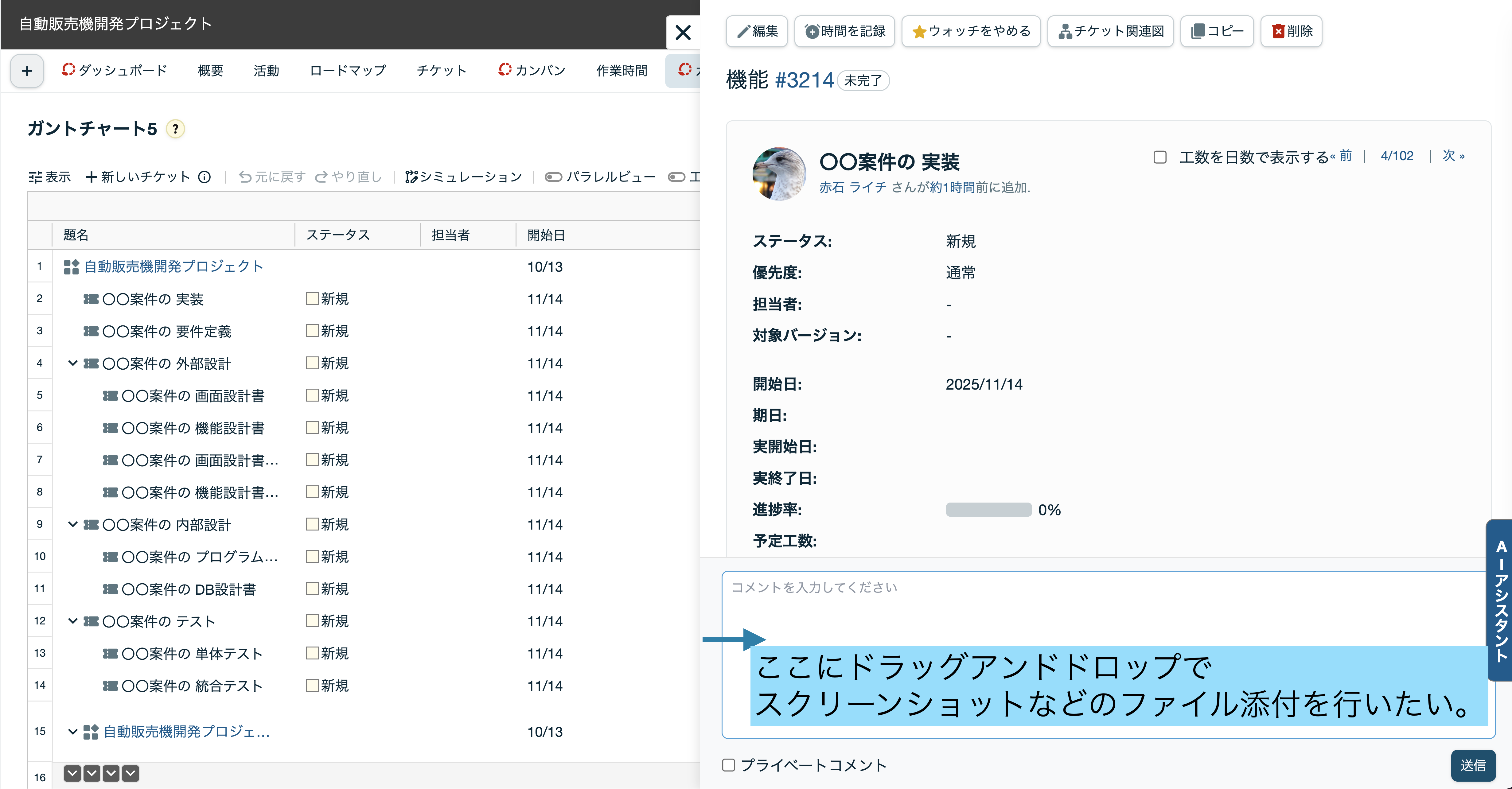 コメントにて作業の報告を行うときに、作業証跡となるファイル(特に多いのはチャット画面のスクリーンショット)を